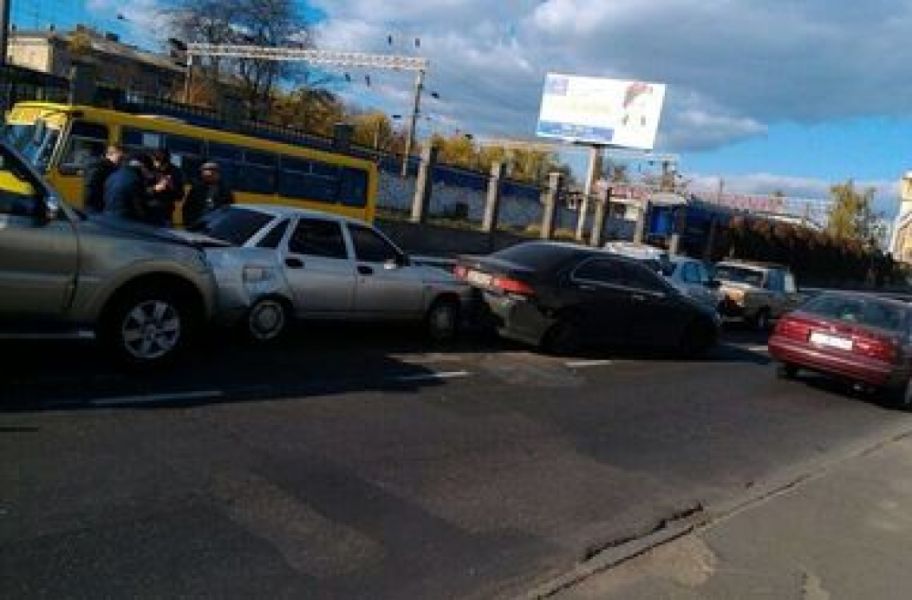 В Одессе сегодня, 4 ноября, на улице Среднефонтанской возле железнодорожного вокзала сразу шесть автомобилей попали в ДТП.