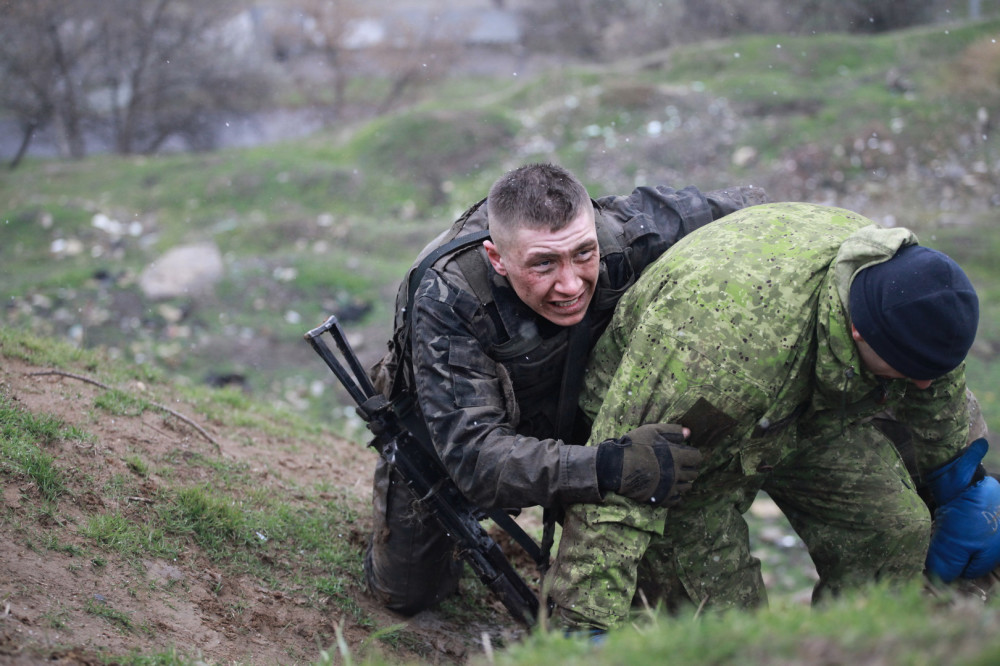 Бойцы легендарного 1-го Отдельного батальона морской пехоты собрались на полуострове Аляуды, чтоб на полосе препятствий показать уровень своей подготовки, и пройдя испытания, получить право на ношение черного берета — символа принадлежности к элитному подразделению флота.