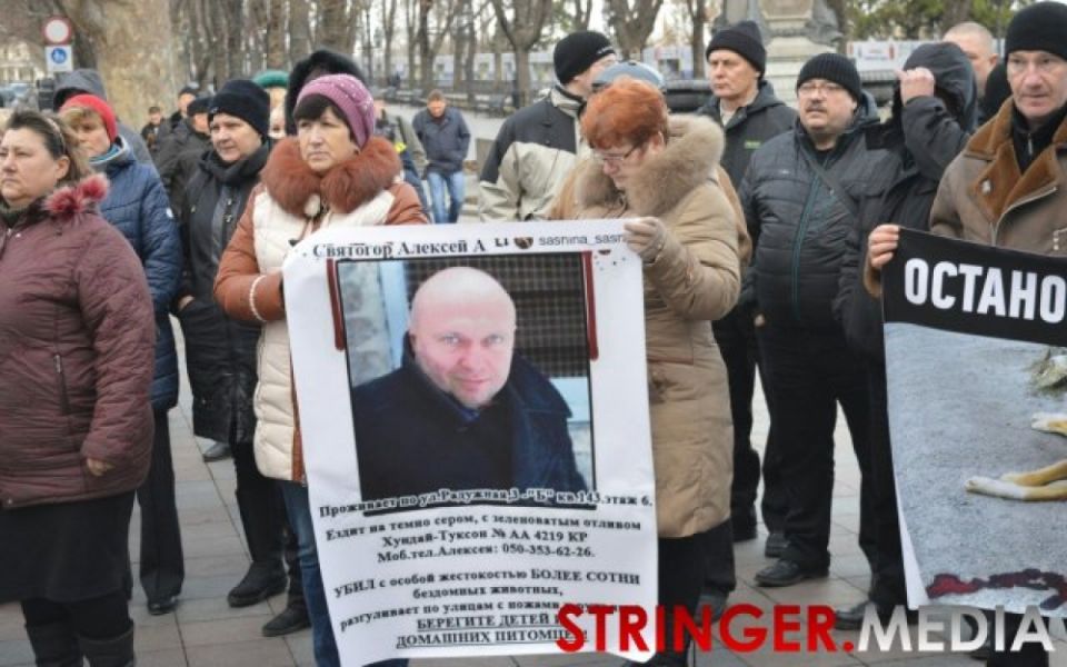 В Одессе зоозащитники, обеспокоенные приездом в город известного догхантера, пикетируют мэрию