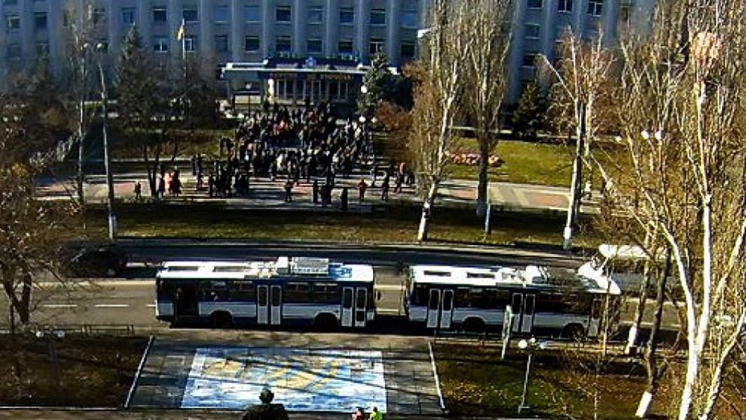 Работники «Херсонэлектротранса» пикетируют «заминированный» горсовет