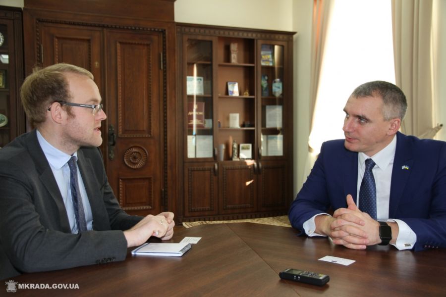 Городской голова Александр Сенкевич провел встречу с советником по политическим вопросам отдела политики Представительства ЕС в Украине Мортеном Ларсеном Нонбое.
