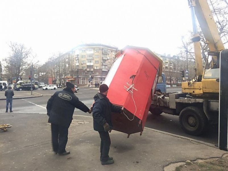 В пятницу, 2 декабря, в Николаеве коммунальные службы демонтировали будки «Позвони» с тех мест, где накануне уже проводился демонтаж.