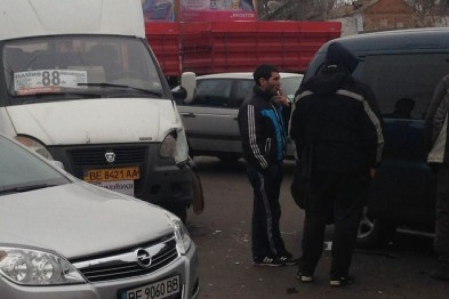 В Николаеве маршрутка врезалась в микроавтобус, на проспекте Центральном образовалась пробка (ФОТО)