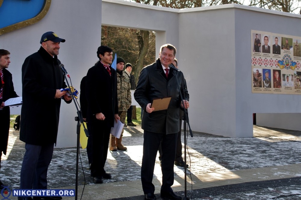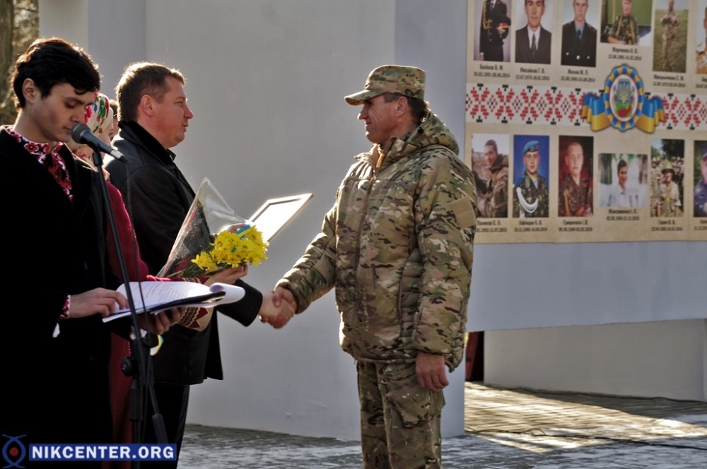 В церемонии приняли участие руководители Херсонской ОГА, Херсонского облсовета, Херсонского горсовета, представители командования и военнослужащие воинских частей, дислоцирующихся в Херсонской области, а также участники АТО и представители общественности. Мемориал освятил настоятель Свято-Покровского храма г. Херсона протоиерей о. Сергей Чудинович.