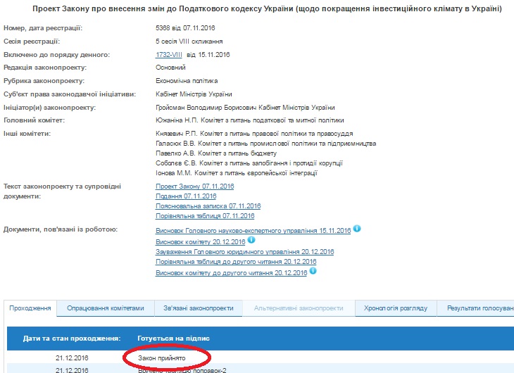 Среди прочего, этот документ предусматривает продление срока формирования нового Реестра неприбыльных учреждений и организаций до 1 июля 2017 года. После подписания Президентом этот Закон вступает в силу с 1 января 2017 года.