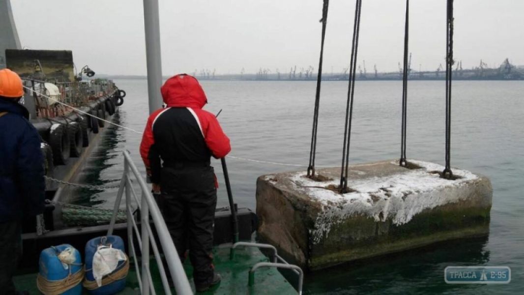 На данный момент работы выполняются в соответствии с графиком, с помощью плавкрана администрации Ильичевского морского порта "Богатырь" и плавкрана ГП МТП "Южный" "ПЛК-1/16".