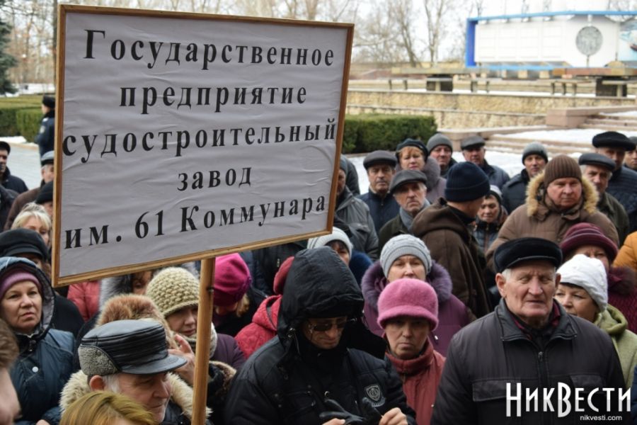 Сегодня, 28 декабря, в Николаеве около 100 работников судостроительного завода имени 61 коммунара, недовольные работой генерального директора Федора Петрова, вышли с пикетом под здание облгосадминистрации.