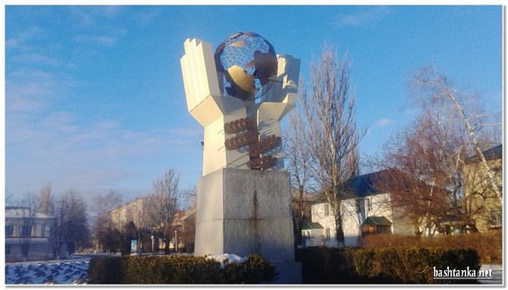В то же время, установленный в Баштанке памятный знак очень напоминает эмблему Содружества Независимых государств, которая символично изображает белые руки, возносящие к синему небу земной шар золотого цвета.