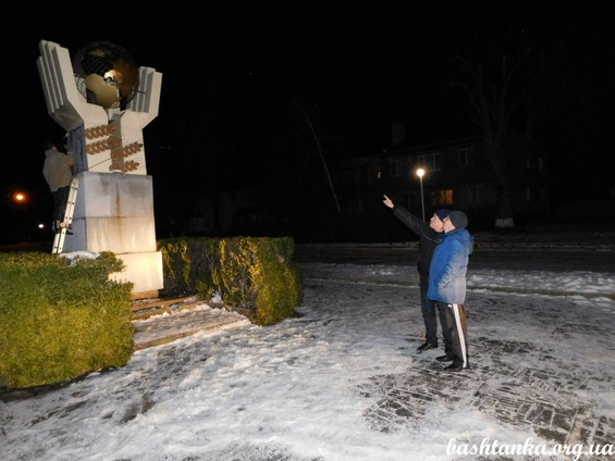 В городе Баштанка на Николаевщине 29 декабря на постаменте, где ранее был памятник Владимиру Ленину, установили знак Единства и Мира.