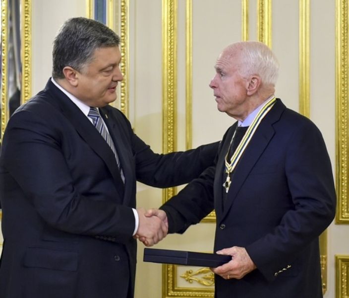 Сенатор Маккейн прибыл в Украину и получил орден Свободы из рук Порошенко