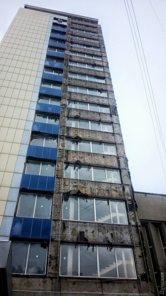 Как сообщает «Думская», сгорела обшивка на правом крыле пятнадцатиэтажного строения.