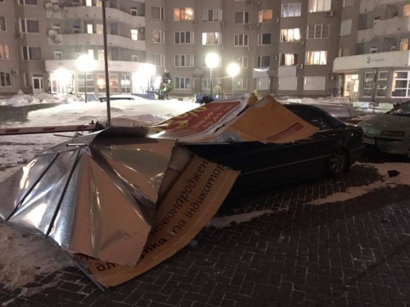 Вечером 6 января сильный ветер, порывы которого достигали 24 м/с, на Среднефонтанской обрушил рекламный билборд. Конструкция упала на "Мерседес", припакованный во дворе ЖК "Чудо-город".
