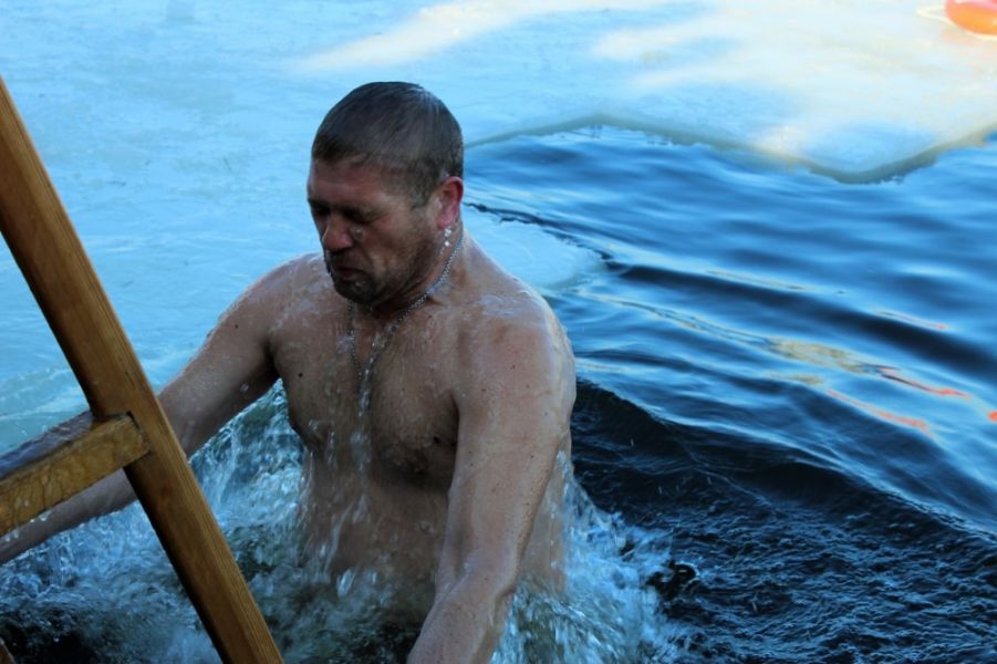Кто–то решил окунуться в ледяную воду спонтанно. После купания многим трудно говорить, но они довольны.