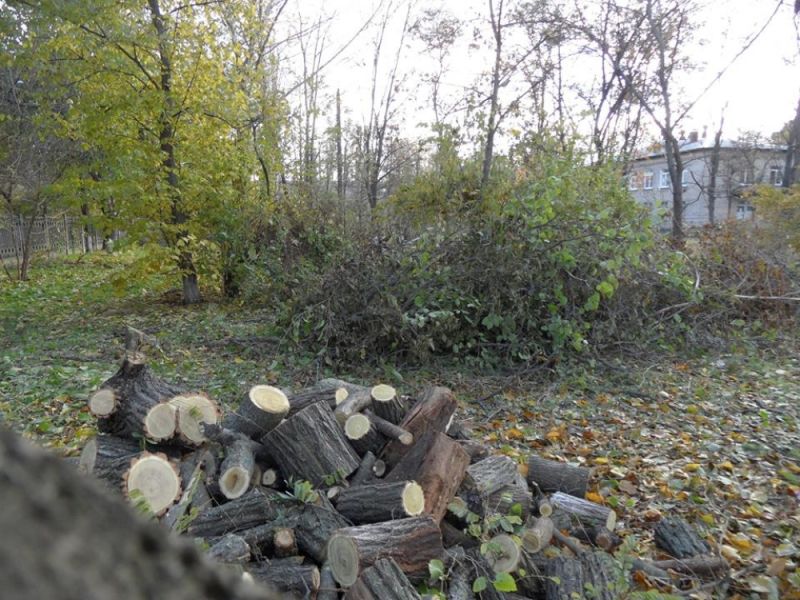 "Мы все лето наблюдали, как во дворе больницы массово уничтожается здоровые зеленые деревья. Я лично сделал несколько фотографий и видео этого беспредела", — написал он.