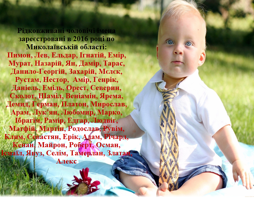 -Встречаются имена, заимствованные из западноевропейских языков, и взятые из популярных произведений зарубежной художественной литературы. В поисках свежих имен, отличных на фоне массовых, супружеские пары обращаются также к древнерусским и славянским сложным именам. Также одним из мотивов, которым определяют избрание имени для младенцев, является чествование именем ребенка выдающихся личностей, литературных и мифических персонажей, киногероев, в том числе героев сериалов, популярных певцов и тому подобное. Также по желанию родителей детям присваивались имена с отступлением от словарной формы, — пояснили выбор николаевских родителей в управлении юстиции.