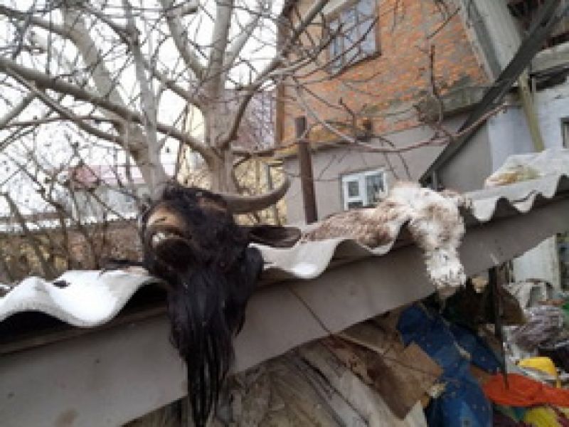 Дача действительно выглядила как живодёрня: шкуры разных животных, черепа рогатого скота, внутренности животных, кровь, мусор, цепи с ошейниками.