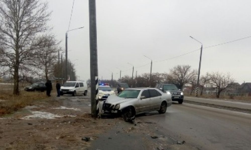 Из-за скользкой дороги на перегоне между Богоявленским и Широкой Балкой Мерседес врезался в столб