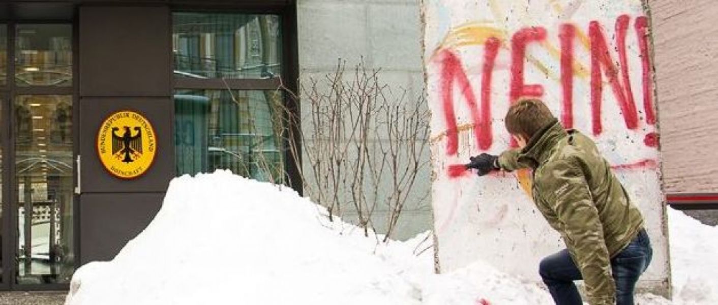 Напомним, 8 февраля нардеп Алексей Гончаренко написал красной краской слово Nein! (нет – ред.) на фрагменте Берлинской стены возле посольства Германии в Киеве.