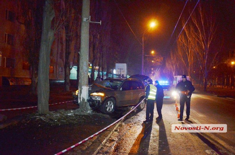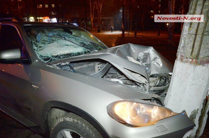 Вечером в воскресенье, 19 февраля, на проспекте Центральном в Николаеве автомобиль BMW X5 врезался в опору электросети.