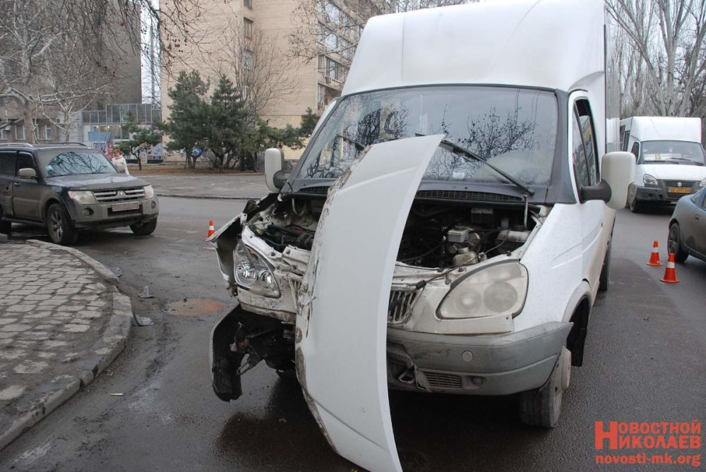 Днём во вторник, 21 февраля, в Николаеве на пересечении проспекта Центрального и улицы Инженерной произошло ДТП с участием микроавтобуса, работающего на маршруте №16, и внедорожника Mitsubishi Pajero.