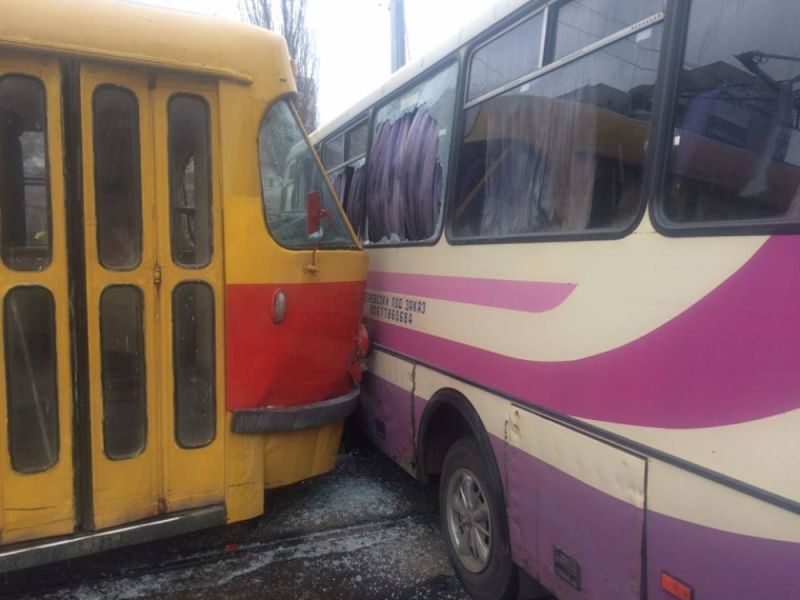 25 февраля около 09:30 на улице Водопроводной произошло столкновение маршрутного автобуса с трамваем.