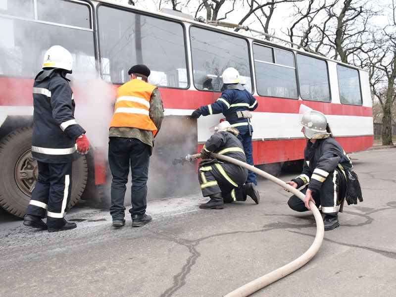 28 февраля в 7:50 в Службу спасения 101 поступило сообщение о пожаре троллейбуса, который находится на конечной остановке по ул. Котельная м. Николаева.