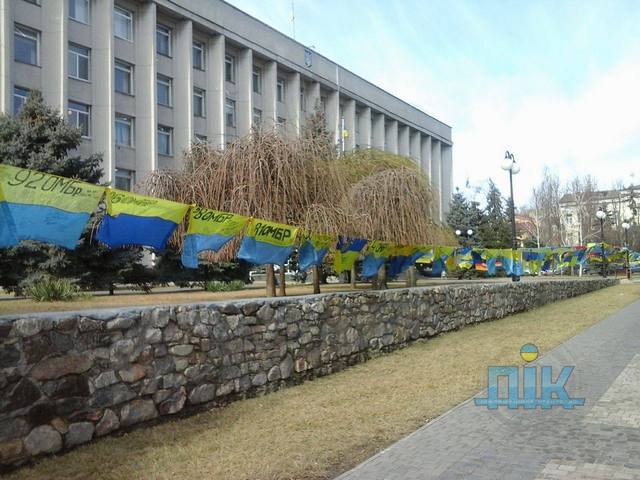 Необычная акция проходит в центре Херсона. У здания горсовета вывесили 325 боевых флагов.