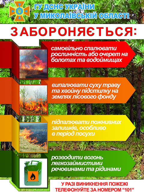 Спасатели Николаевщины обращаются ко всем жителям и гостям нашего края, а также ценителей отдыха на природе! Соблюдайте правила пожарной безопасности и помните, что самовольное сжигание растительности или ее остатков запрещено! Кроме того, не забывайте, что дым наносит непоправимый вред здоровью! Если вы обнаружили пожар в лесу или на открытой территории немедленно сообщите об этом Службу спасения по номеру 101!