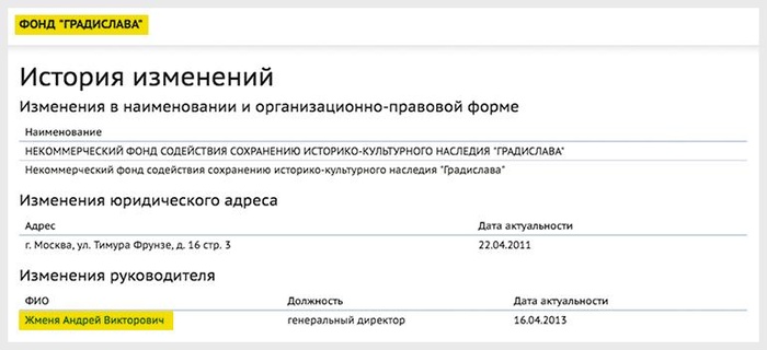Это значит, что Олег Кудрявцев или человек с имейлом [email protected] не просто решили зарегистрировать домены, указав владельцем фонд «Градислава» или «Соцгоспроект», — они предоставили документы на эти компании и имели право действовать от их имени.
