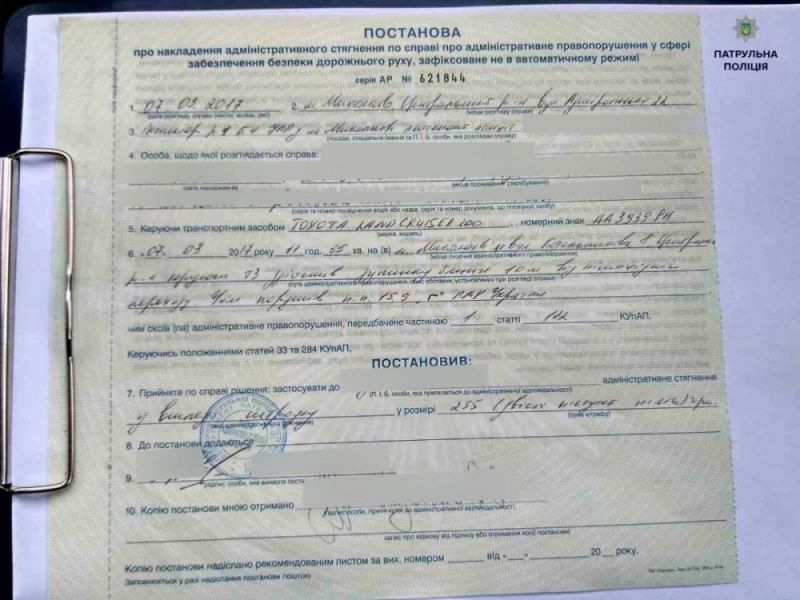 Полиция оштрафовала водителя председателя Николаевской ОГА за нарушение правил дорожного движения