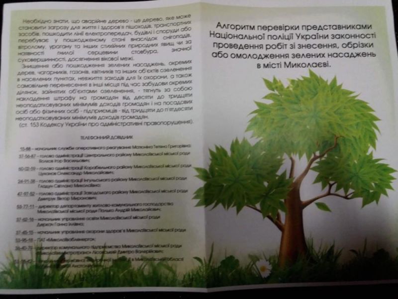 Стоит отметить, несмотря на то, что брошюра была представлена для сотрудников управления патрульной полиции, она имеет полезную информацию и для обычных горожан, которые обеспокоены незаконной обрезкой деревьев в Николаеве.