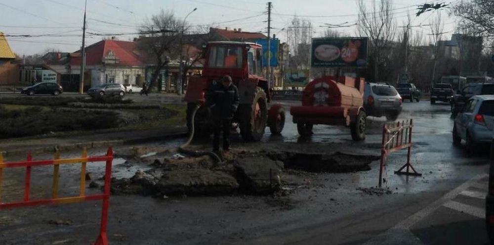 На Пушкинском кольце в Николаеве из-за прорыва трубы образовалась пробка