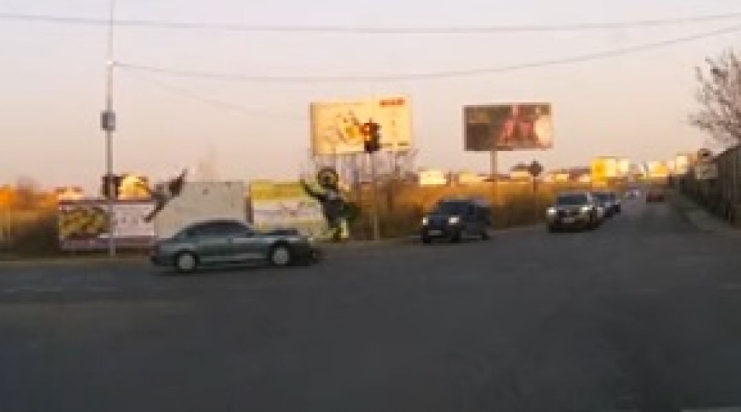 На записи видно, как после столкновения мотоциклиста перебросило через авто. Пострадавшего госпитализировали.