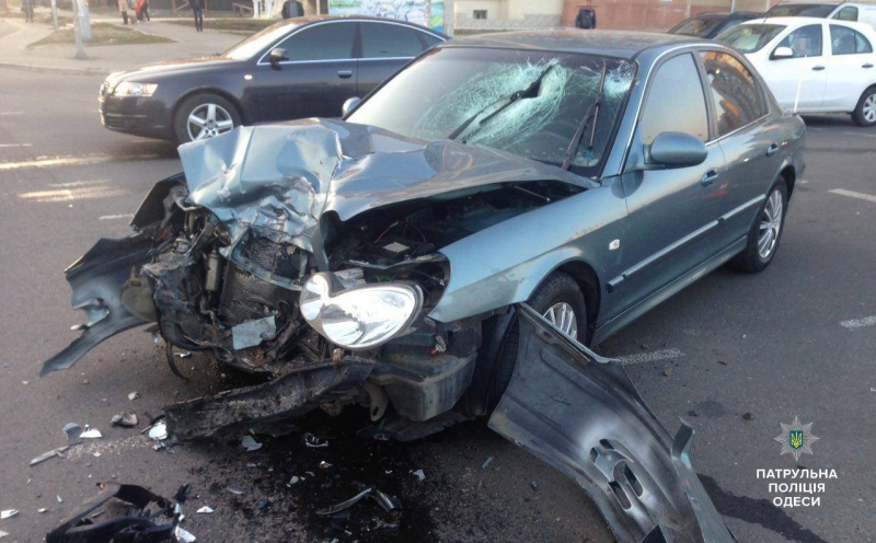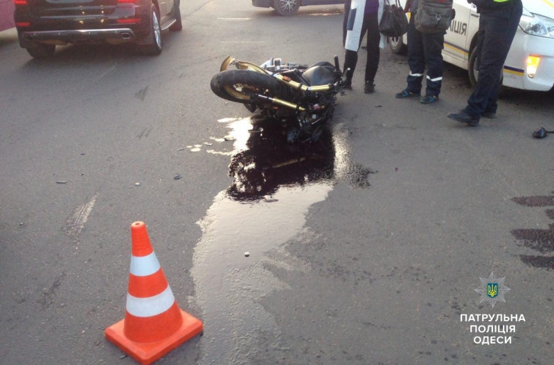 В Одессе мотоциклист столкнулся с автомобилем Hyundai (ВИДЕО 18+)