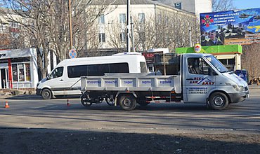 В городе Первомайске на Николаевщине днем 7 марта на улице Грушевского столкнулись мопед «Альфа» и грузовой автомобиль «Mercedes-Benz Sprinter-313».