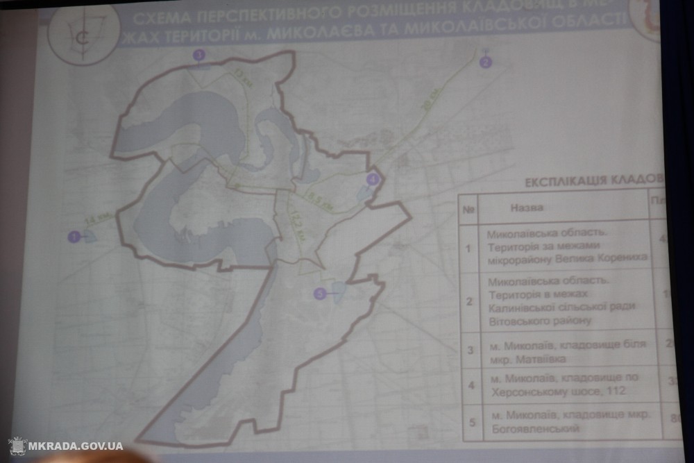 Николаевцев ознакомили с проектными материалами относительно детального плана территории микрорайона "Богоявленский", предоставили возможность выбора вариантов размещения кладбища на территории города Николаева и близлежащих территориях. Проведено анкетирование граждан, чтобы выяснить их видение решения проблемы с захоронением умерших, а также, позицию николаевцев по развитию территории микрорайона "Богоявленский".
