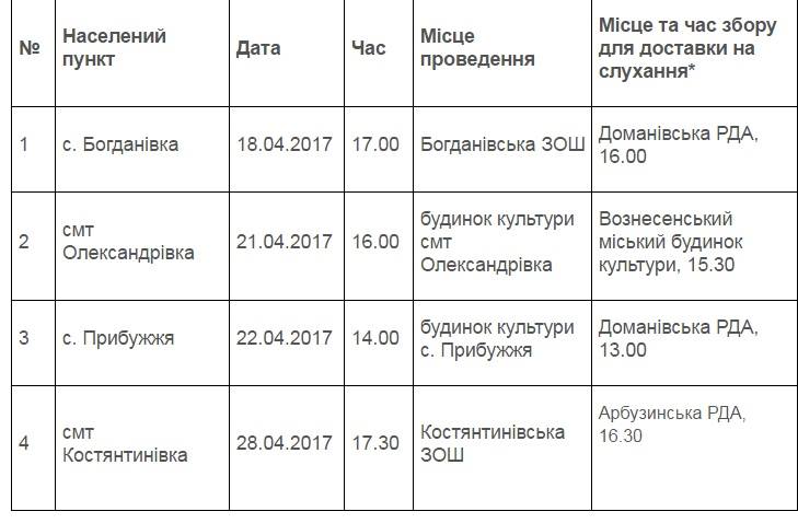 ЮУАЭС опубликовала график проведения общественных слушаний по рассмотрению вопросов поднятия уровня Александровского водохранилища до отметки 20,7 м и обсуждения материалов по оценке воздействий этой деятельности на окружающую среду.