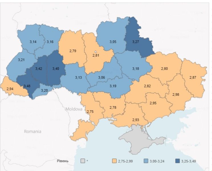 По результатам исследования Николаевская область заняла предпоследнее место среди всех регионов Украины. Ближайшими "соседями" оказались Житомирская (2.79) и Одесская (2.75) области.