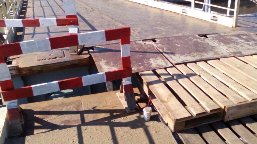 В настоящее время, аварийно-опасное место в настоящее время ограждено, а для удобства пешеходов на стыке мостовых частей установлены деревянные ступеньки.
