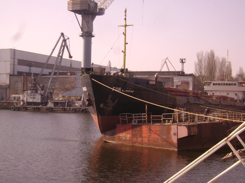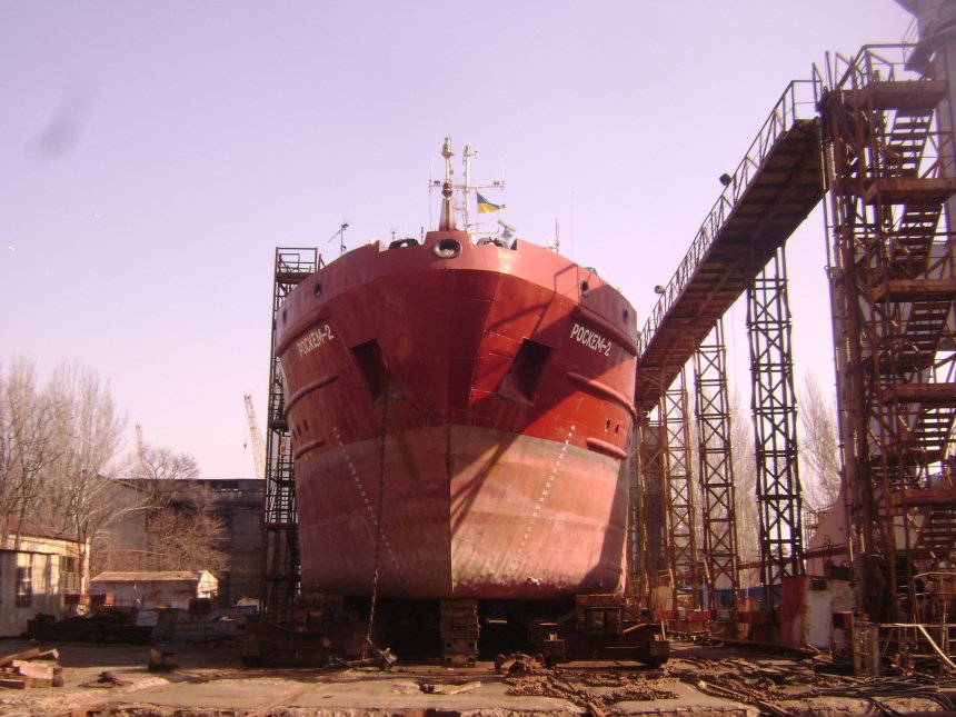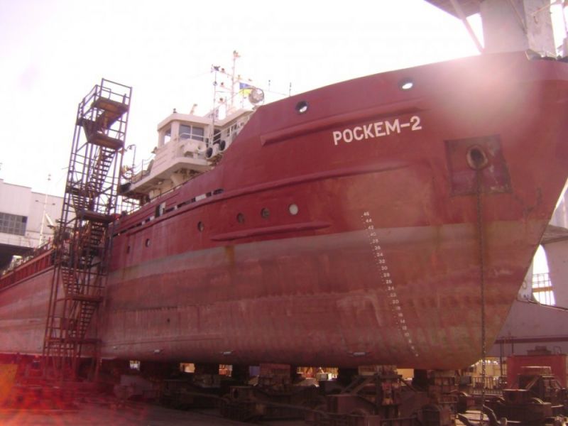 С помощью плавучего дока была осуществлена накатка танкера на стапельную позицию поточно-позиционного производства. Заказчиком произведена дефектация и определен общий объем работ. Теперь николаевские корабелы выполняют корпусные работы, ремонт трубопроводов и донно-бортовой арматуры.