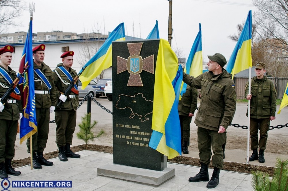 Памятник нацгвардейцам, погибшим в боях за Украину был открыт возле базы ВЧ №3056.