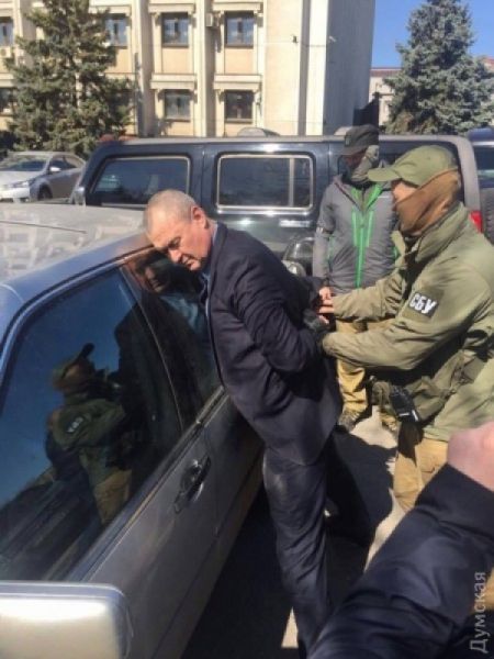 У здания Одесской облгосадминистрации, что на проспекте Шевченко, сотрудники СБУ задержали начальника управления по вопросам чрезвычайных ситуаций и оборонной работе Сергея Помазана.