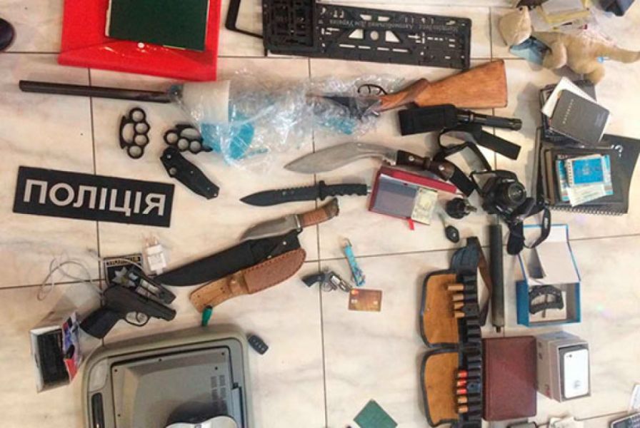 В числе изъятого — пистолеты с глушителем, ружье, кастеты, автомобильные номера другого региона Украины и пр.