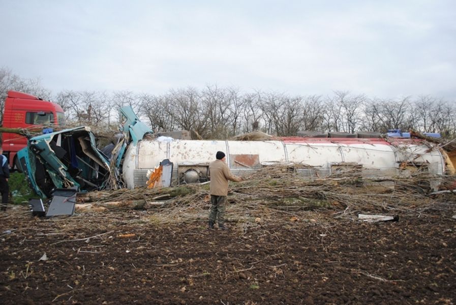 В результате ДТП цистерна не была повреждена, утечки подсолнечного масла не произошло, однако пострадал водитель 1979 года рождения. Его доставили в больницу скорой медицинской помощи г. Николаева.