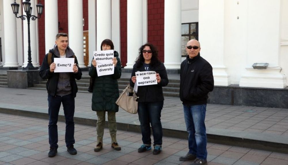 Четверо одесских общественников сегодня, 13 апреля, провели акцию у входа в мэрию – они вышли на Думскую площадь с научными лозунгами и анонсировали, что 6 мая проведут "Марш агностиков".