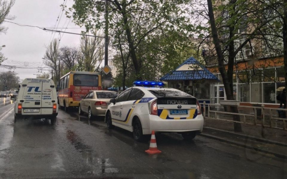 На центральном проспекте Херсона произошло тройное ДТП с участием маршрутного автобуса