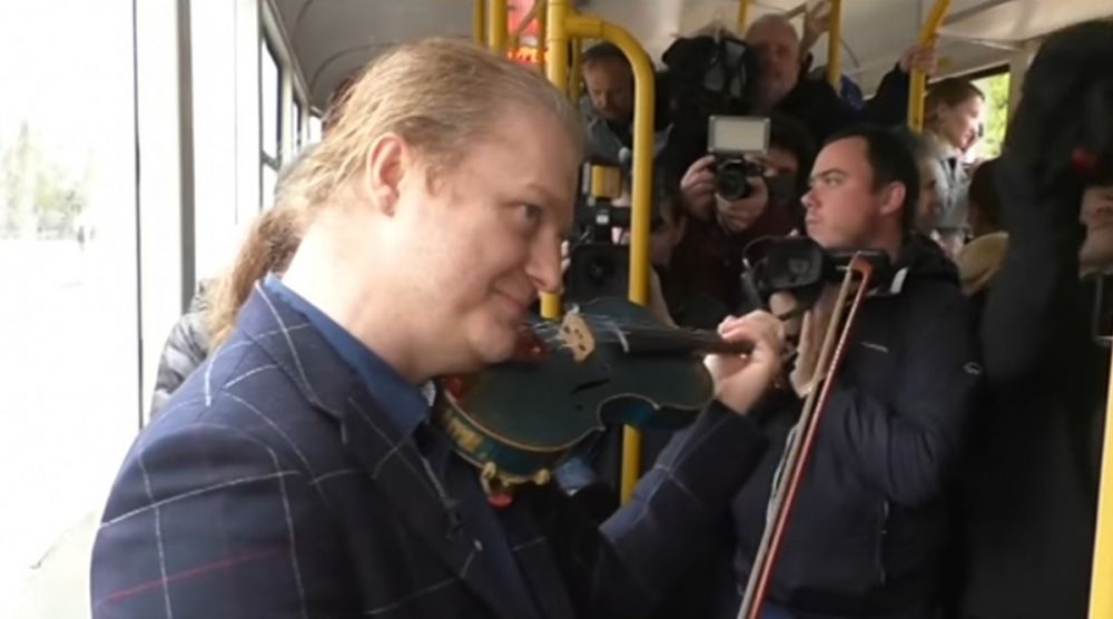 Чешский скрипач сыграл гимн Евросоюза в Одесском трамвае