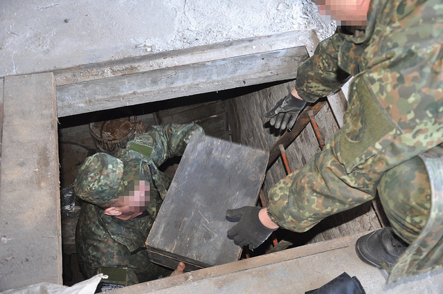 Оперативники обнаружили хранилище в подвальных помещениях в гараже, в центре областного центра. Установлено, что владельцами гаража есть родные братья, один из которых — бывший милиционер, а другой — до последнего времени был активистом запрещенной в Украине Коммунистической партии. Сейчас оба временно находятся в Российской Федерации.