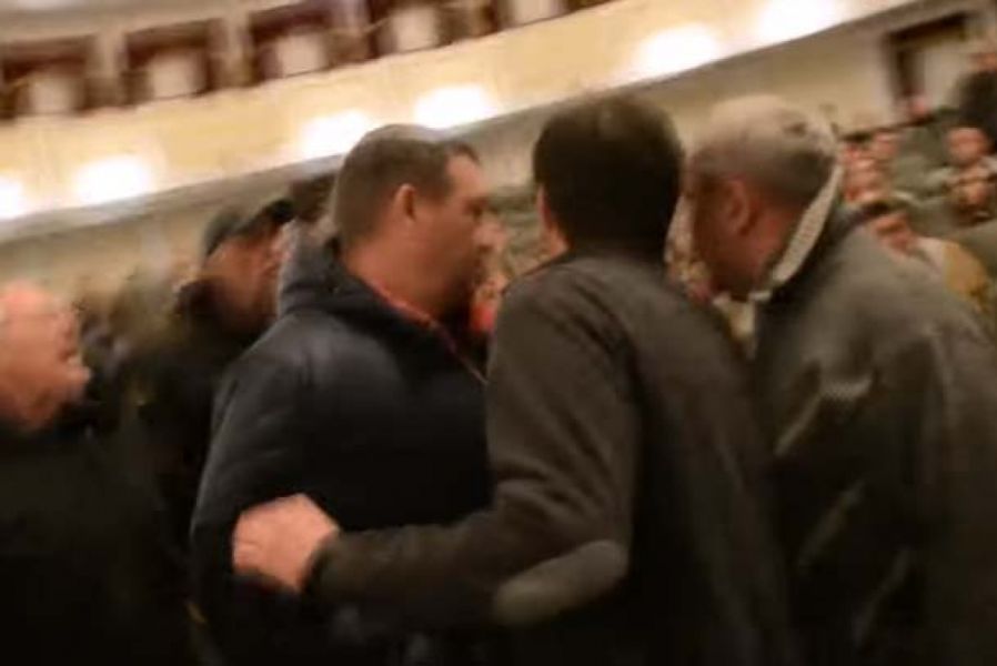 В зале Николаевского академического русского драматического театра во время собрания коллектива Заслуженный артист Украины Сергей Лозовенко напал на корреспондентку интернет-издания "Новости-Н" – Марию Дорохину и пытался забрать у нее камеру.