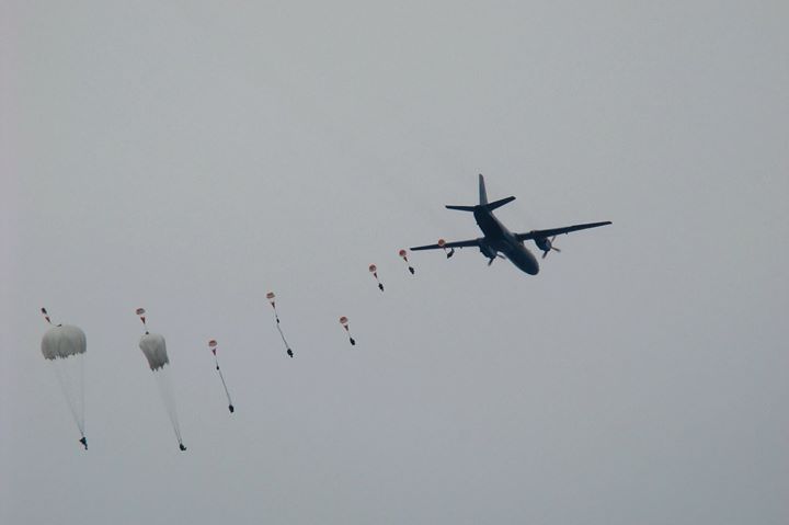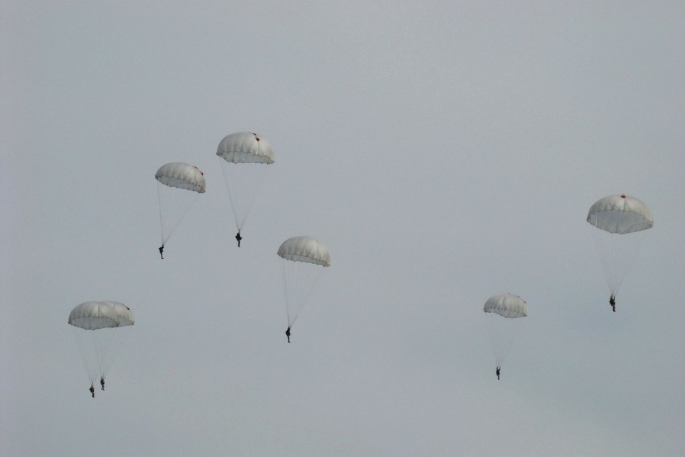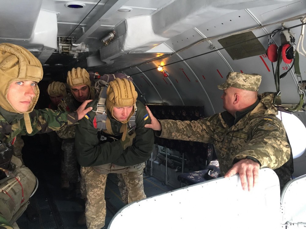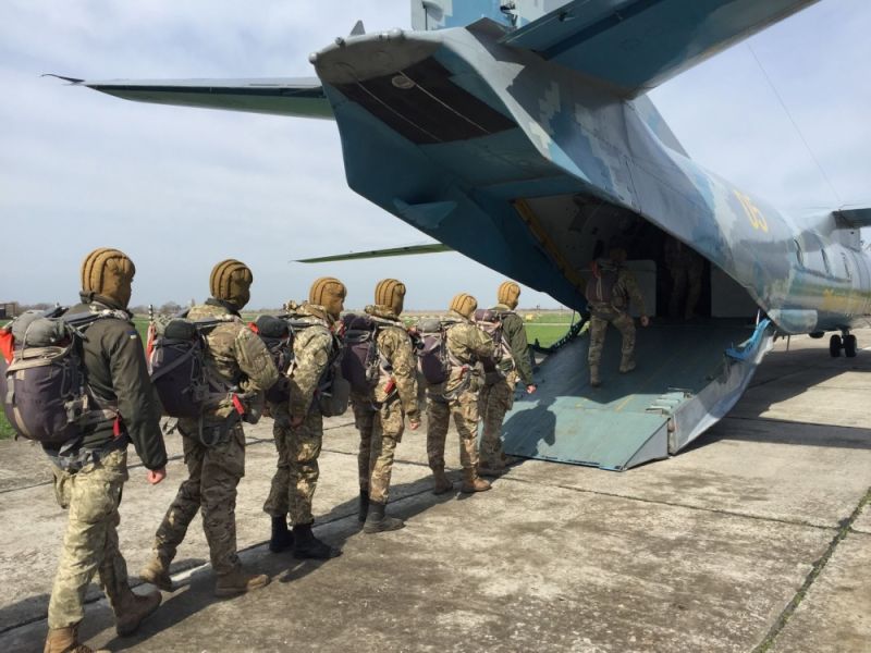 Курсанты факультетов подготовки специалистов военной разведки и специального назначения высокомобильных десантных войск осуществили прыжки с парашютом с самолета Ан-26 на Черноморском полигоне в Одесской области.